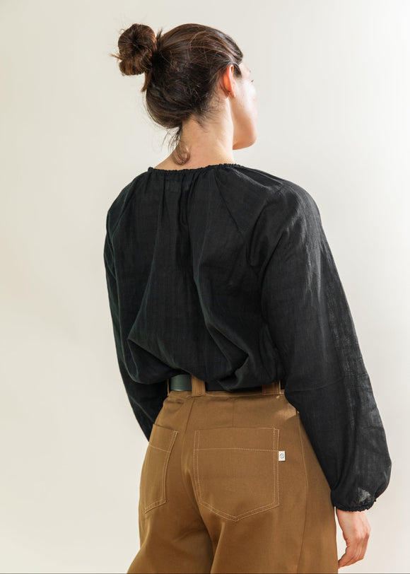 Black Check Gather Top