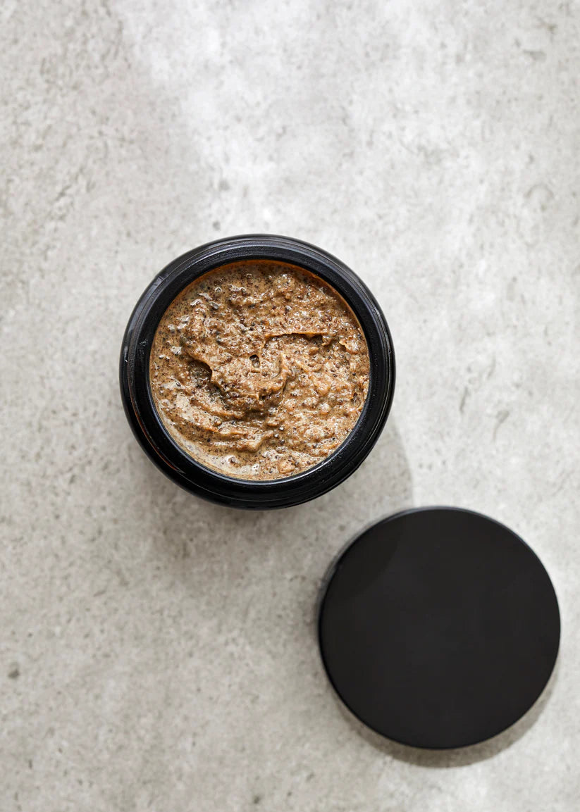 Ingredients: Orbignya Oleifera (Babassu) Seed Oil*, Calophyllum Inophyllum (Tamanu) Seed Oil*, Prunus Amygdalus Dulcis (Sweet Almond) Oil*,Bentonite Clay, Butyrospermum Parkii (Shea) Butter*, Elaeis Guineensis (Ethically Sourced African Palm) Oil, Cocos Nucifera (Cacao Butter) Oil, Theobroma Cacao Ash, Citrus Grandis (Grapefruit Peel) Oil*, Dehydroacetic Acid & Benzyl Alcohol, Cymbopogon Martini (Palmarosa) Oil*, Cacao Pod Ash .37.6% Organic 98.87% Natural Origin * Certified Organic