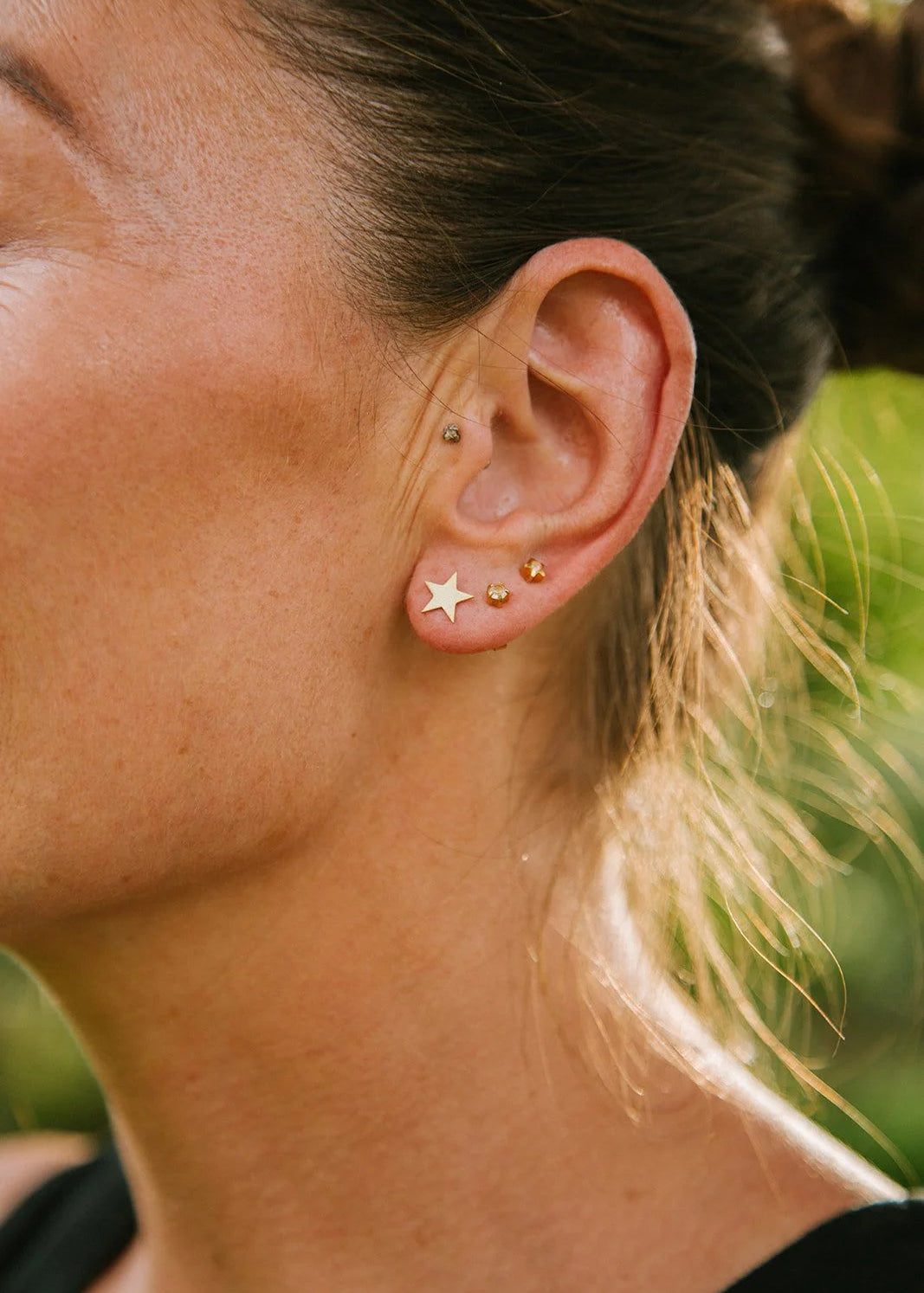 Golden brass fronts on hypoallergenic, stainless steel posts