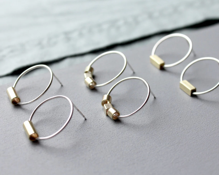 Minimal jewellery created in Cornwall from recycled brass and silver. Bringing together geometric forms and soft curves to create elegant, wearable designs.
