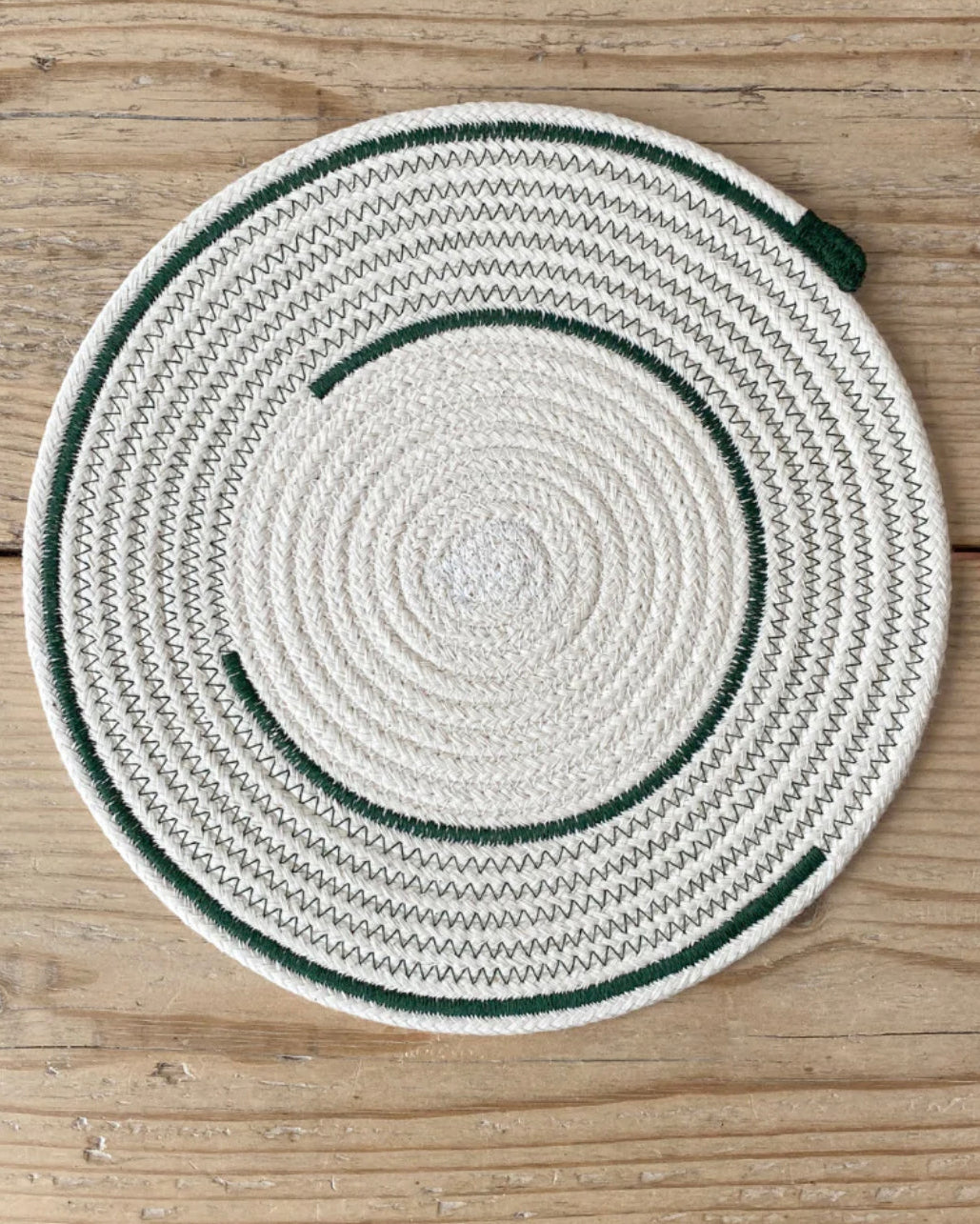Handmade to last with unbleached cotton rope & 100% organic cotton thread. Each one is handmade using a freeform sewing technique. Please allow for a small variation in dimensions as each is individually created.