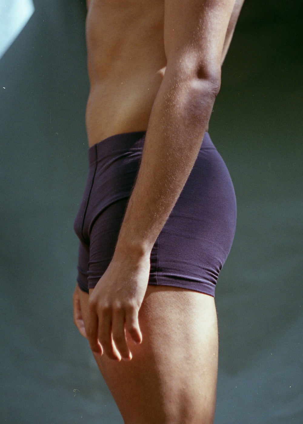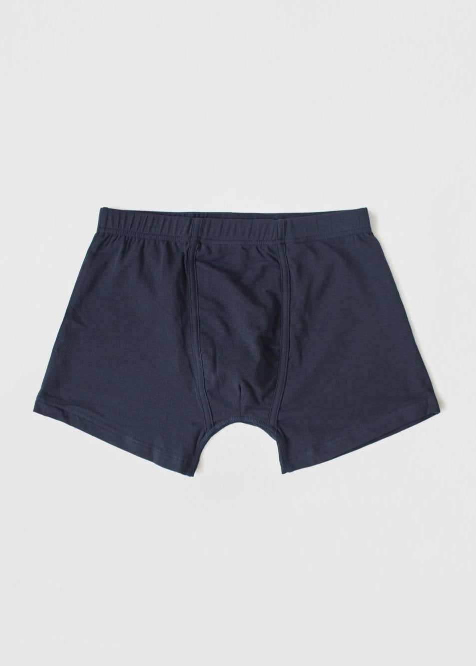 Classic, soft organic cotton jersey trunks with slim fitting legs and enclosed elastic waistband. Extremely comfortable for everyday wear.