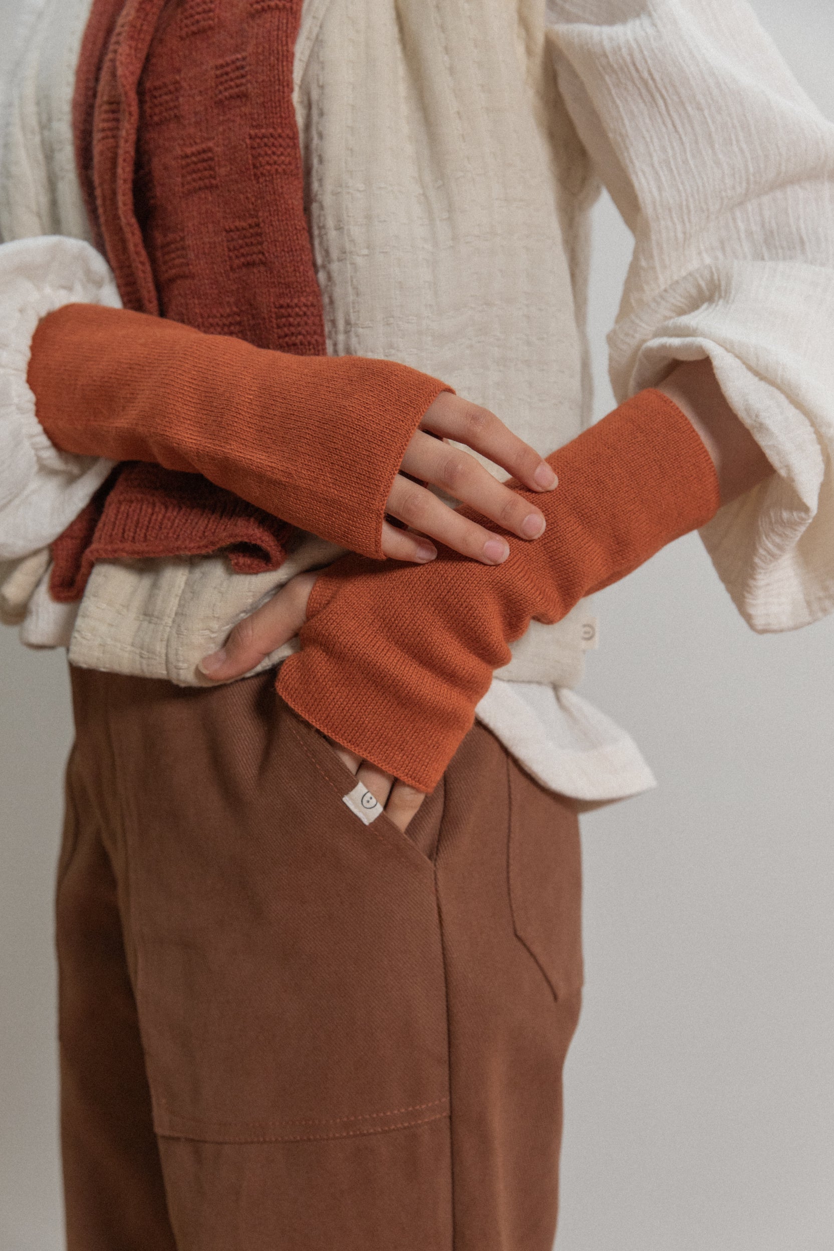 In softest baby alpaca wool, these jersey knit wrist warmers have a thumb hole and are shaped at the wrist for maximum comfort and warmth.
