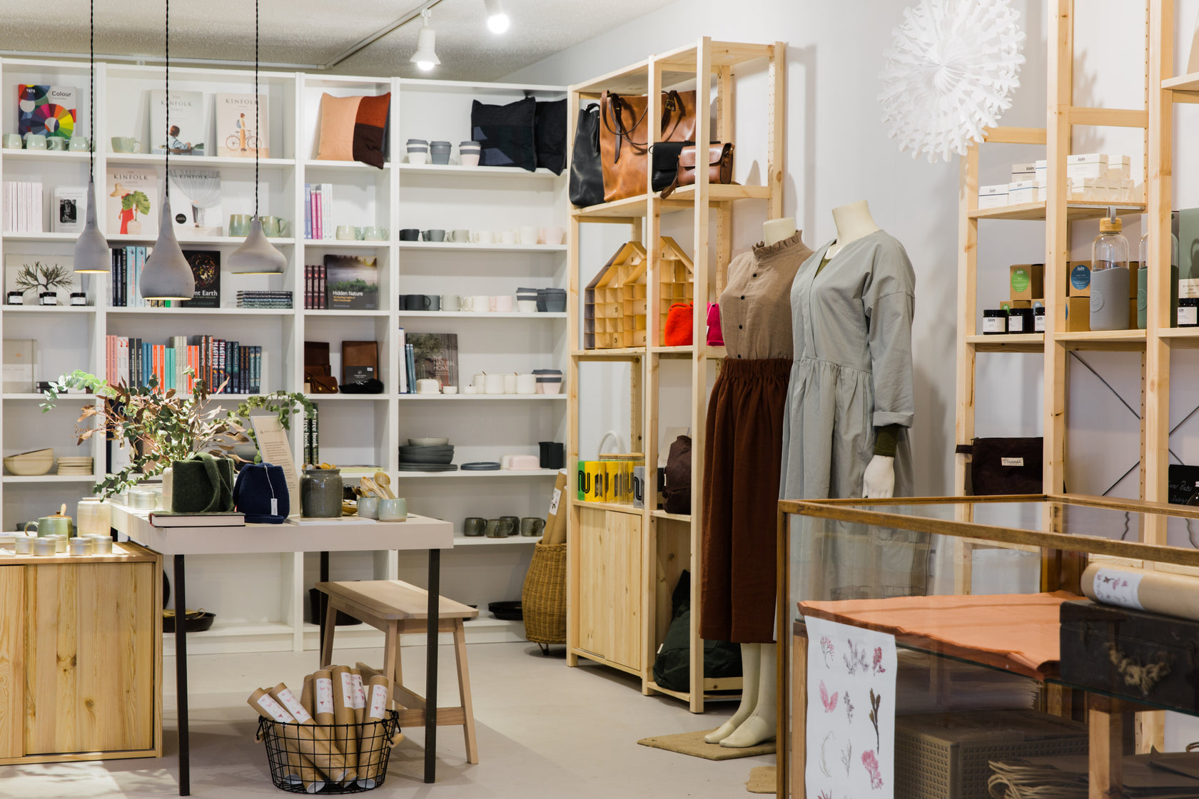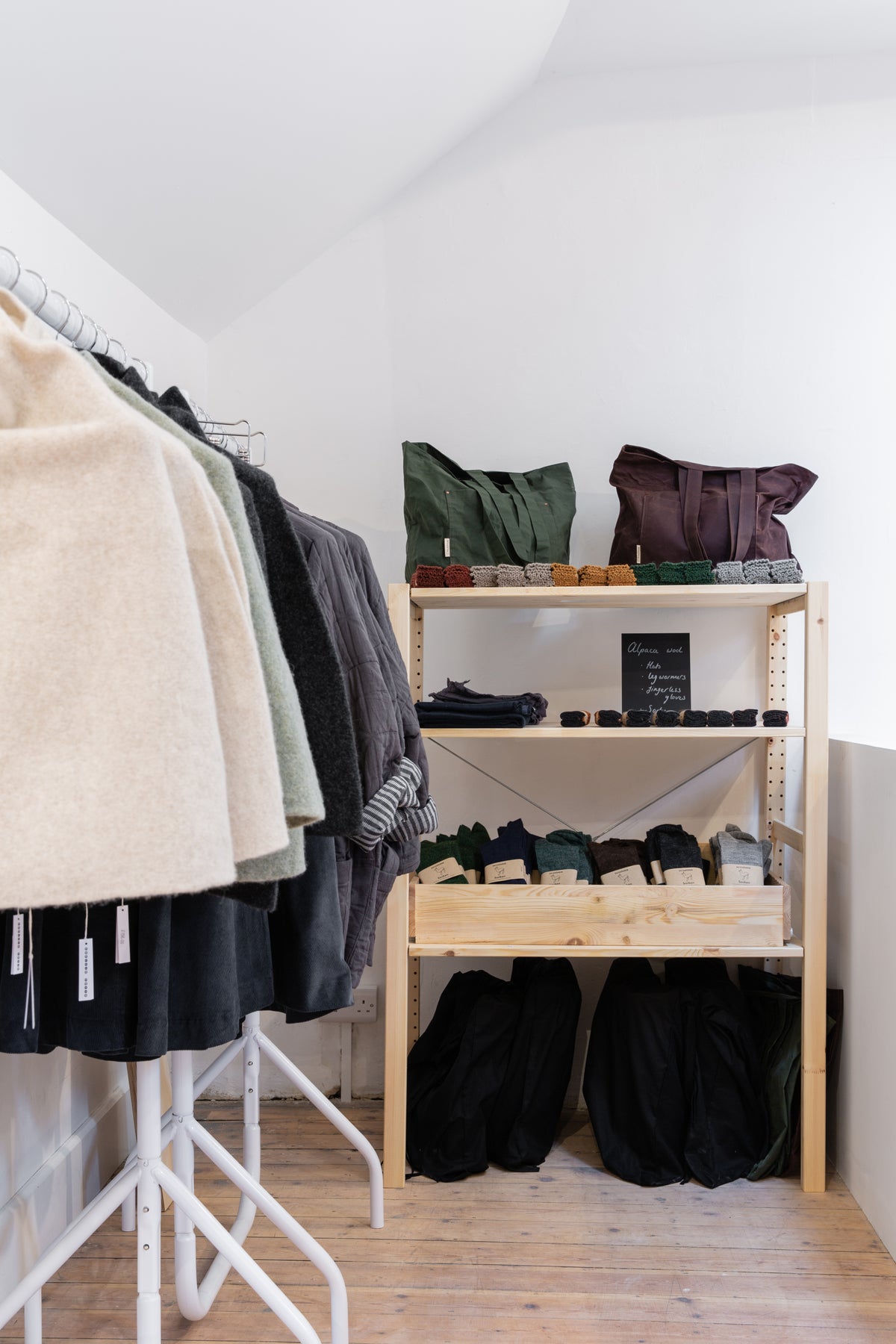 We have a wonderful sustainable department store in Totnes High Street, just up from the market square. You will find our open sewing studio; a large selection of our clothing and many beautiful gifts, homewares and accessories by local makers and artisans, all in a listed renovated building full of character. Orders can be picked up from here too. We'd love to welcome you.